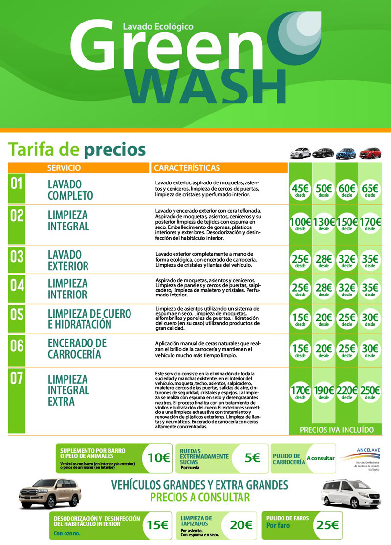 | LAVADO EXTERIOR | Desde 25 € | Desde 28 € | Desde 32 € | Desde 35 € |